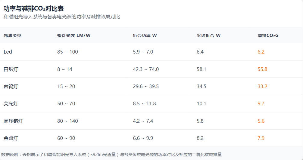 与比较节能的Led灯相比,不同型号的和曦智能阳光导入系统每年可多减排约99.2~793.62kgCO2