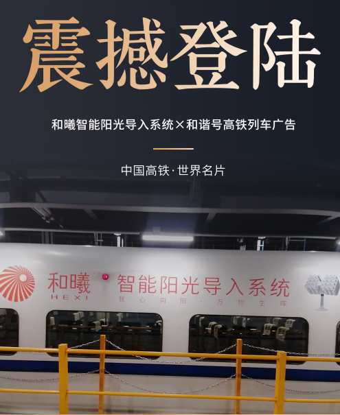 2025年五一黄金周期间,和曦智能阳光导入系统正式上刊中国高铁车身广告,在纵贯全国的飞速奔跑的高铁上,将会有越来越多的人看到和曦。